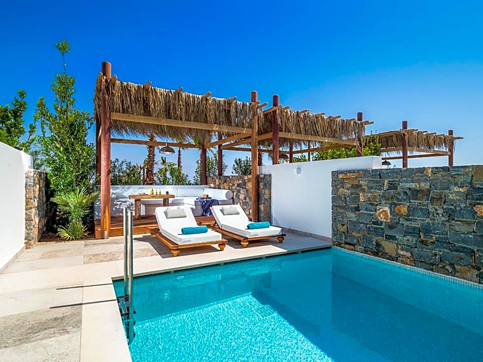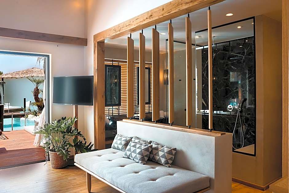 Premium Double Pool view with Jacuzzi is 366 square feet and includes a king-size bed 150-183 width plus a sofa bed.